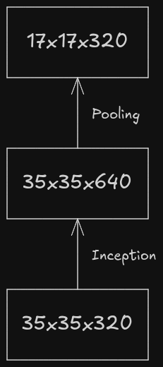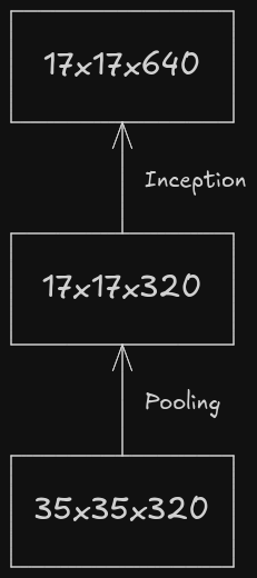The above flow might look pretty from point-of-view of representation and flow of the information as before down sampling the feature maps, the number of channels have been increased to avoid representational bottleneck, but it is quite computationally expensive as the inception module performs convolutional operation and it is applied on the 35x35 image with 320 channels.