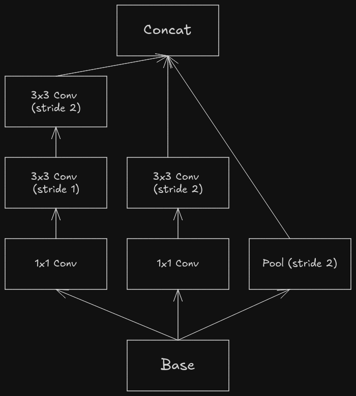 The above workflow is prone to representational bottleneck as the number of channels is increased after down sampling the feature maps.