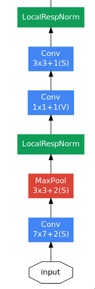 The initial few layers are quite similar to that of the AlexNet — a large convolutional layer (7x7) to capture high level spatial information quickly, followed by a bunch of max pooling and normalization layers. The final convolutional layer outputs an image of size 56x56x192, a huge number of channels containing rich information about the image’s features, which enter the series of inception module blocks.