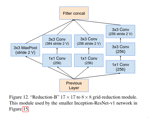 The reduction-B block is another multi-branch micro-network block which is used for efficient dimension reduction. This block is much more deeper and more feature-preserving (retains more richer representations) as compared to reduction-A block. Reduction-A block is a shallower and prioritizes speed and aggressive down sampling.