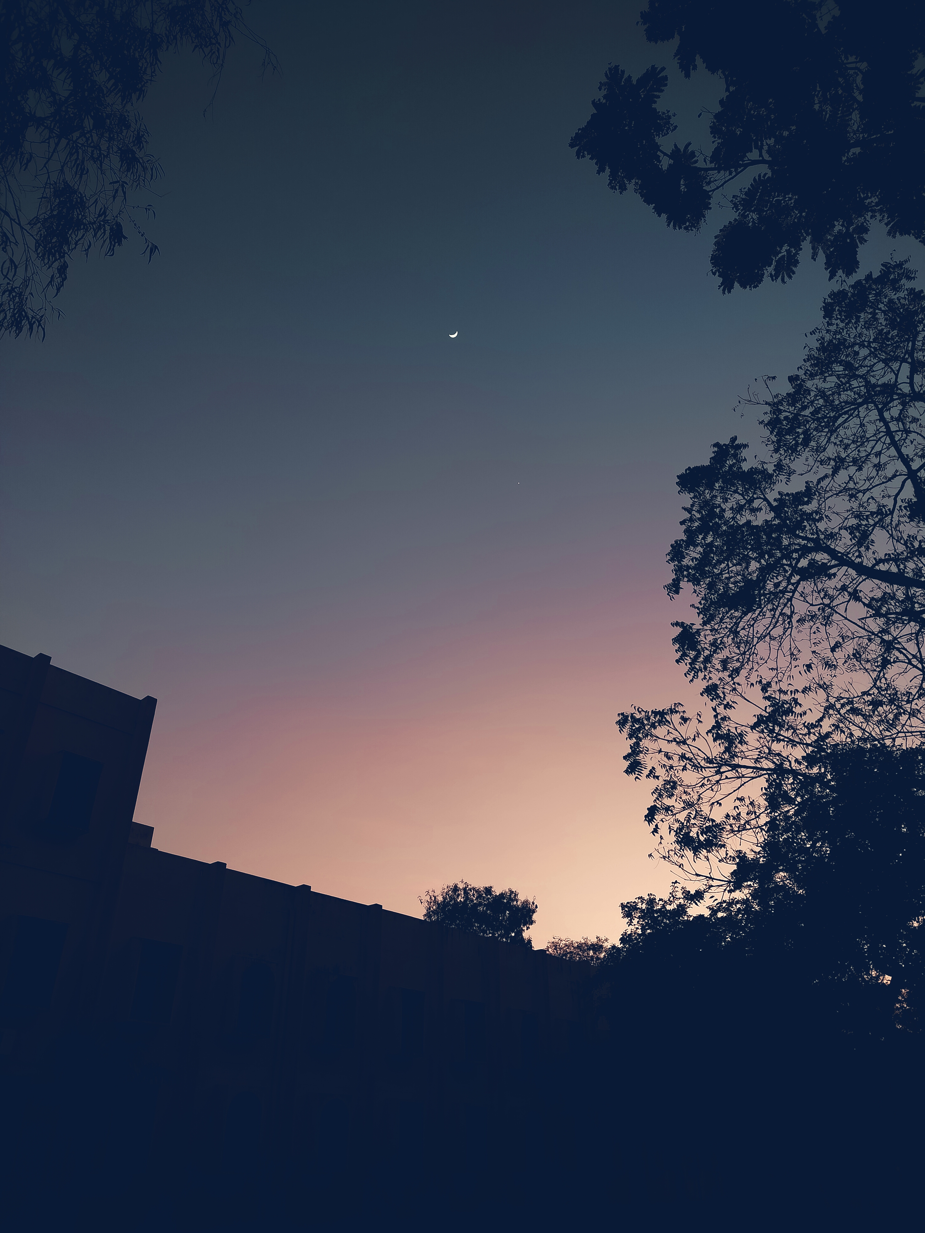 Pink sky - taken from a TV tower near NIT Warangal Blue-orange gradient in sky - taken from my hostel in freshmen year Blue sky - taken during an evening walk Crescent moon - taken near NIT Warangal's library Pretty clouds - taken at BITS Pilani, Hyderabad Sky tides - taken from top of my sophomore year hostel